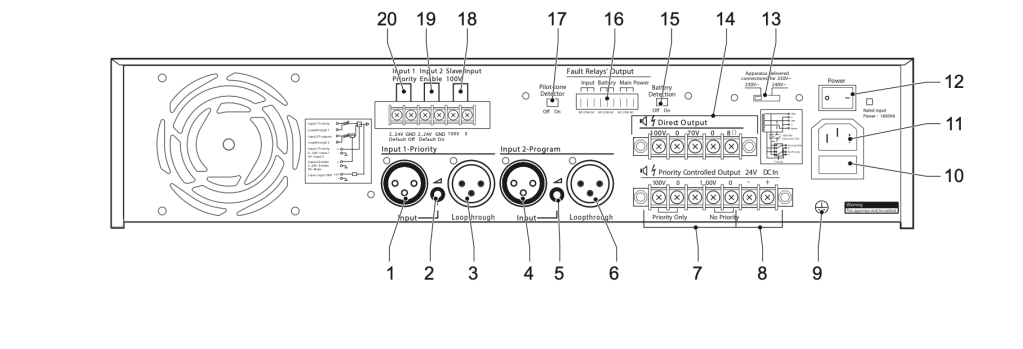 - 優先控制揚聲器輸出端子 – Priority controlled loudspeaker output terminals